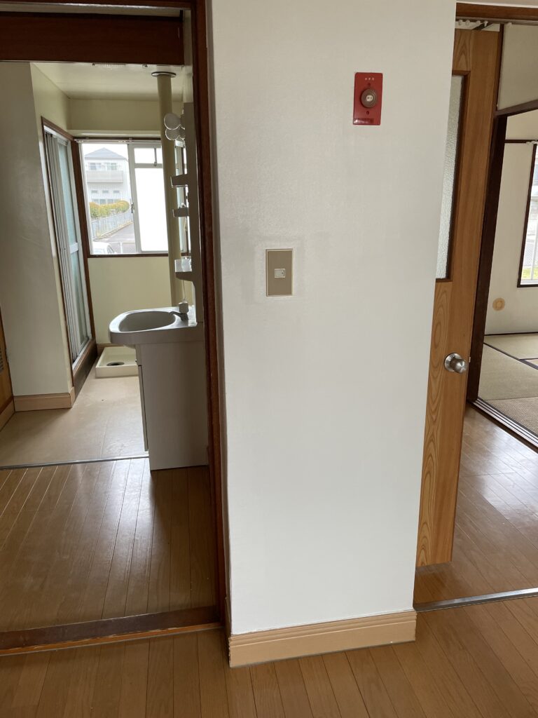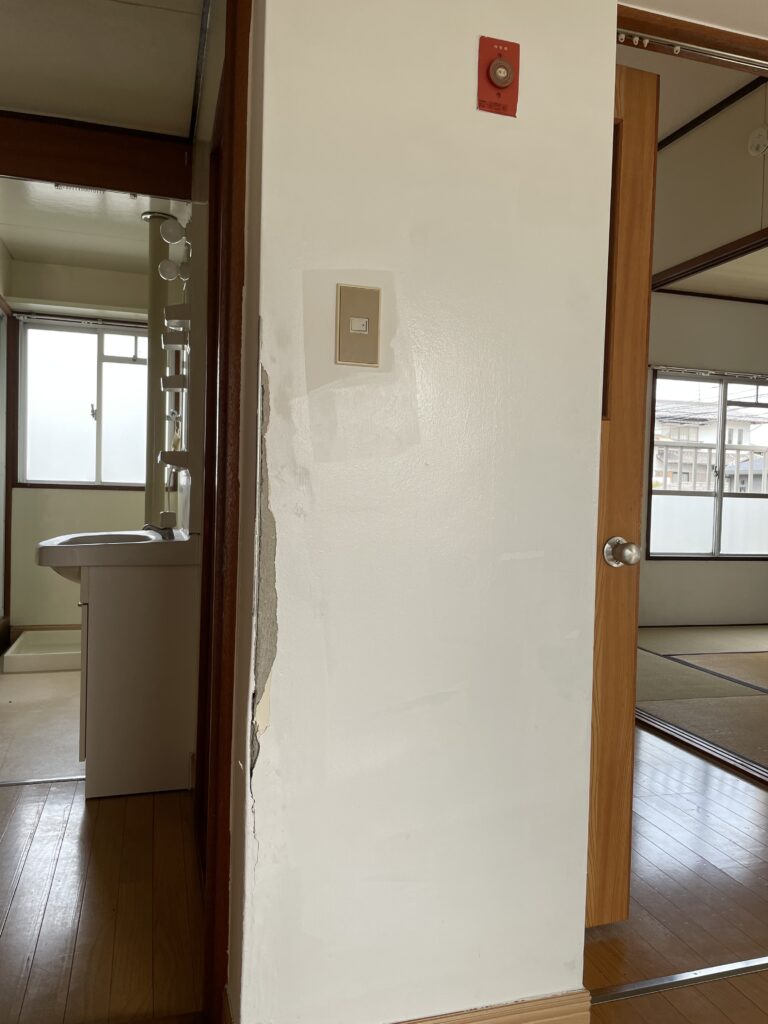 室内の壁に家具をぶつけて角が破損してしまっています。